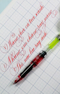 - Nét đậm khi viết mạnh hoặc đổi góc bút