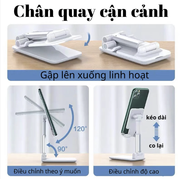Chân quay cận cảnh để bàn thiết kế có thể gấp lại, điều chỉnh linh hoạt chắc chắn. Chân quay có thể dùng làm giá để điện thoại,giá để máy tính bảng,.. Sản phẩm phù hợp với hầu hết các dòng điện thoại, máy tính bảng trên thị trường Công dụng của sản phẩm Có thể để trên bàn làm việc hoặc vị trí phù…